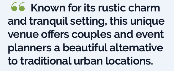 Couples can choose from several event packages, including an all-inclusive option that covers catering, décor, coordination, and other key details. This package is ideal for those seeking a seamless and stress-free planning experience, while a venue-only option allows more customization with external vendors, provided they are licensed and insured. Amenities often include complimentary valet parking, a bride’s cottage, groom’s cottage, and even vintage décor elements like a classic farm truck for dramatic photo opportunities.